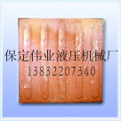生产能力:100×200mm×60mm四联,同时可生产尺寸为500×500×150mm以下方砖,路沿石等各种水泥制品。多柱自动液压脱模。